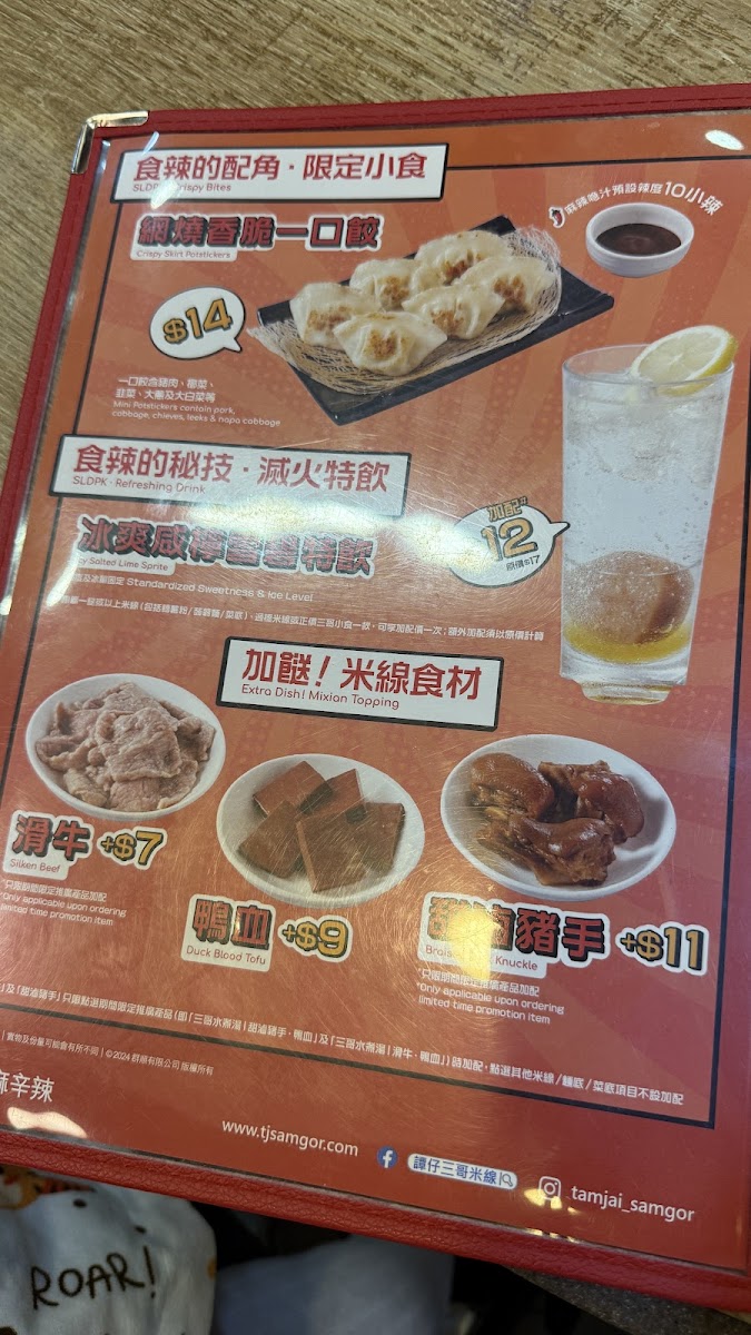For those seeking variety, the extensive selection of snacks and value sets, such as the Potato Starch Noodles with Red Sausage Combo, offer generous portions at reasonable prices. The inviting atmosphere is further enhanced by attentive and friendly service, creating an enjoyable dining experience. Whether you’re in the mood for a quick takeaway or a leisurely meal with friends, TamJai SamGor (Quarry Bay) promises to satisfy your cravings while ensuring a welcoming environment to linger and enjoy your meal.